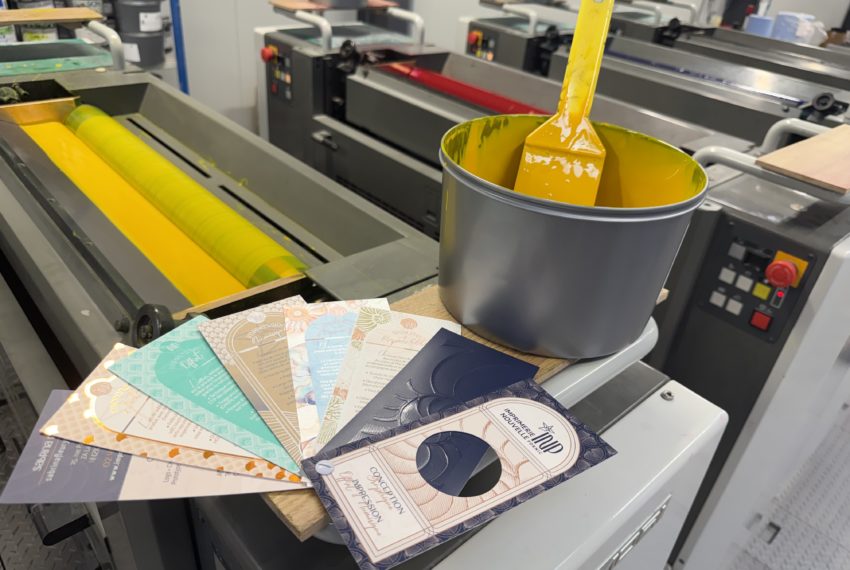 Visite du studio de création, design et mise en page PAO, puis de l’atelier de fabrication avec l’impression numérique et offset, présentation de notre très large choix de papiers (grammages, textures) explications sur les finitions (pelliculage, vernis, dorure, gaufrage) et les façonnages (découpe en forme, pliage, brochage, collage…), partage de nos valeurs et de nos actions concrètes pour le respect de l’environnement, certification Imprim’Vert.