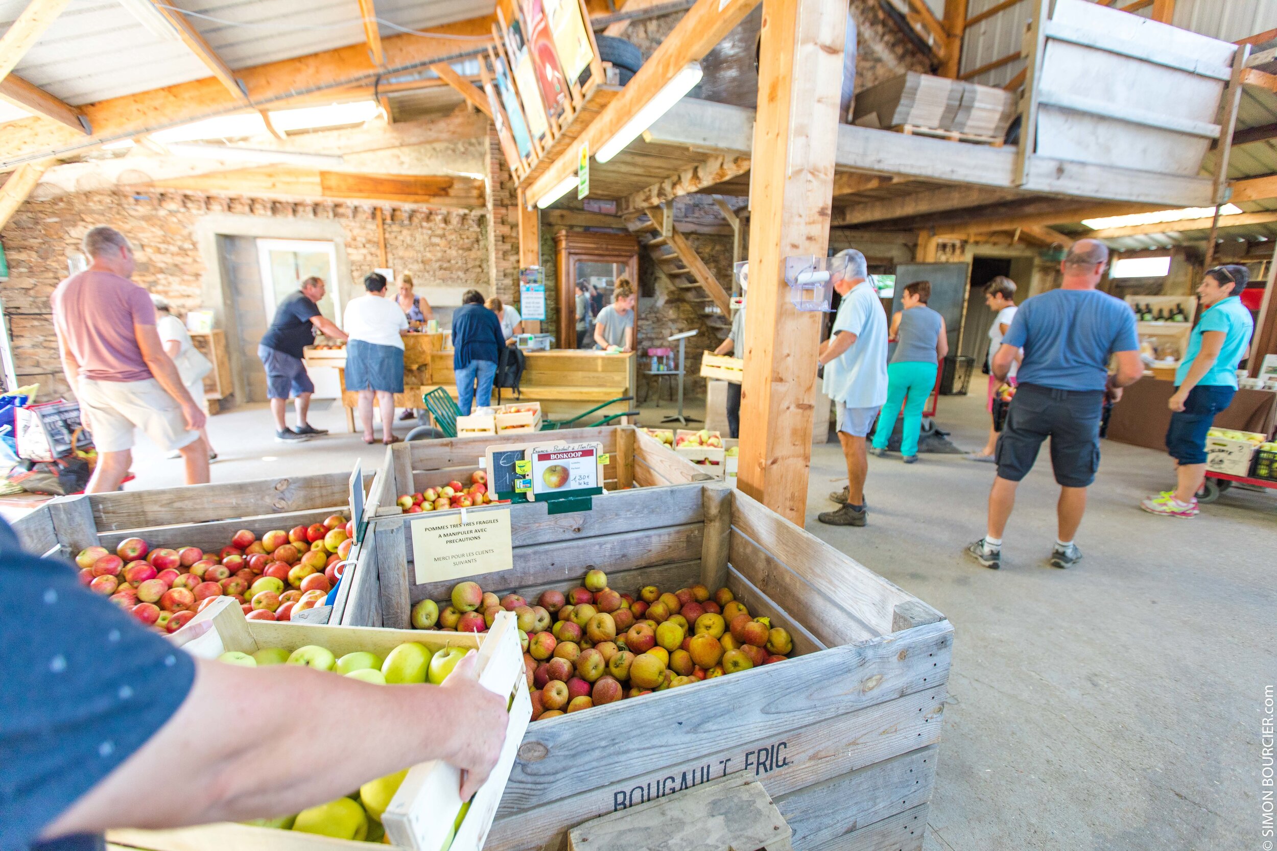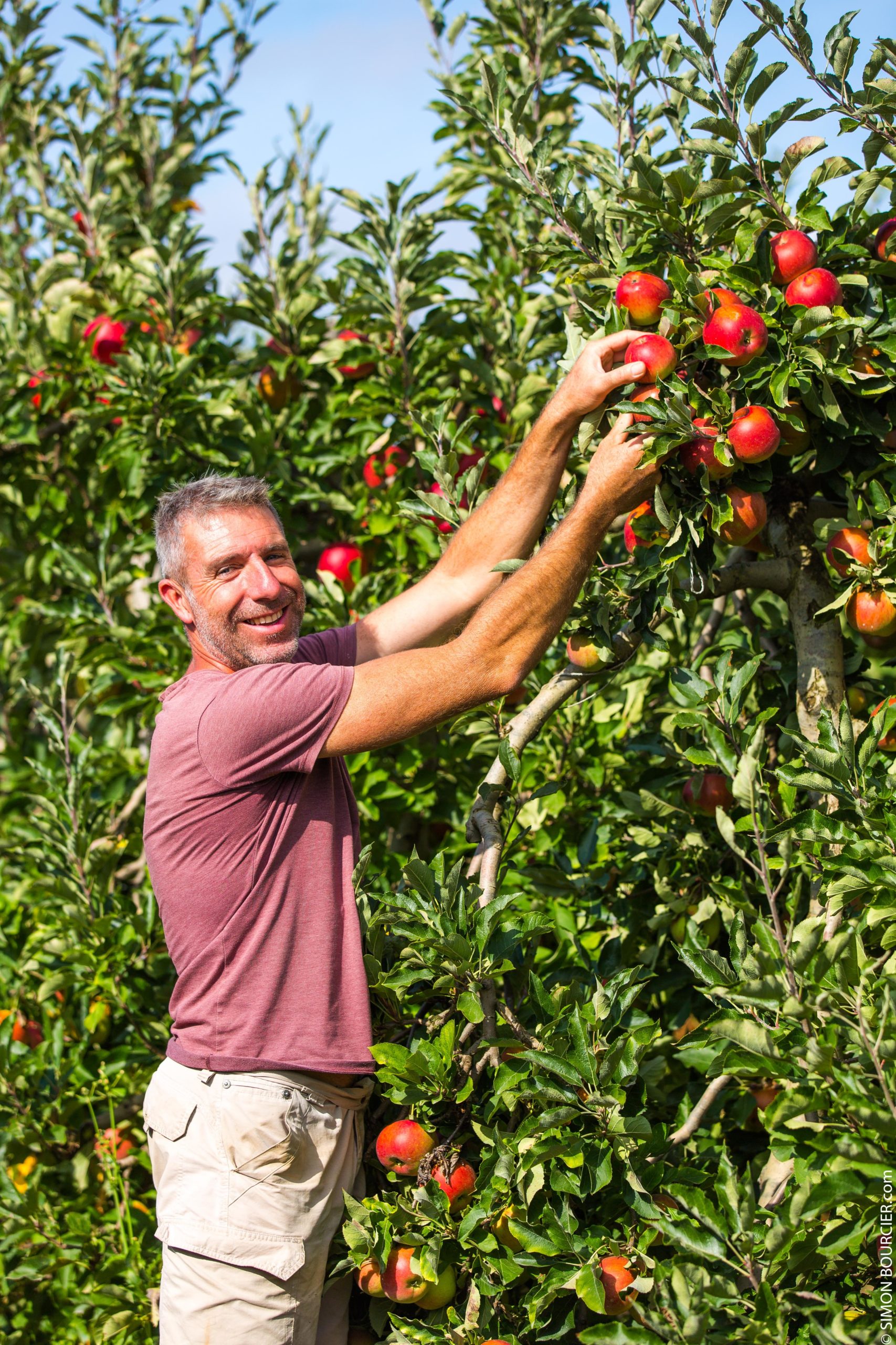 Depuis trois générations, la famille Bougault cultive les Vergers de la Malvergne. En 1998, Éric Bougault a repris l’exploitation et perpétue l’histoire familiale tout en l’adaptant à ses valeurs : moins d’hectares, mais un choix assumé de privilégier la vente directe et la cueillette plutôt que la grande distribution.